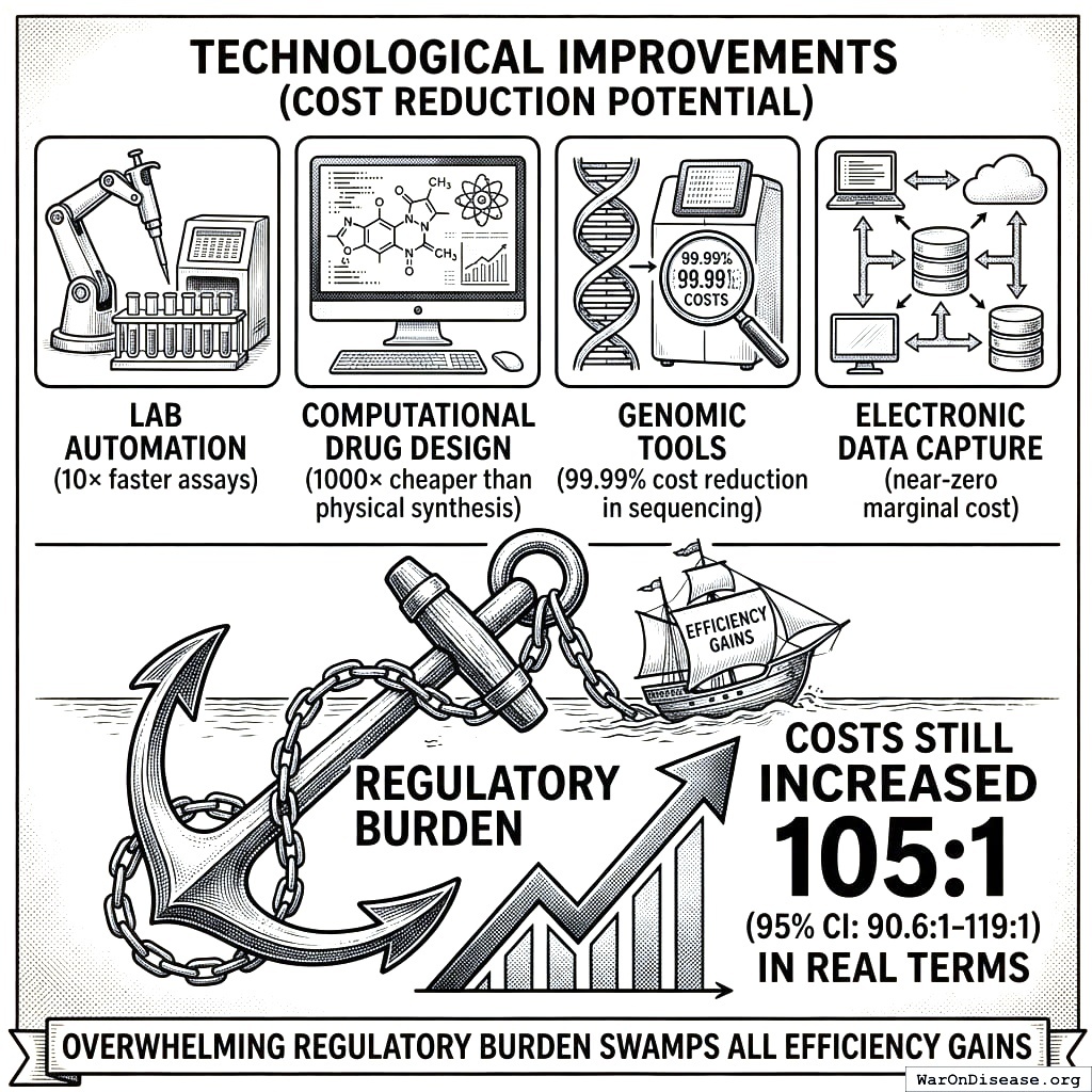 These requirements added 2-3 years and $50-100M per drug candidate.