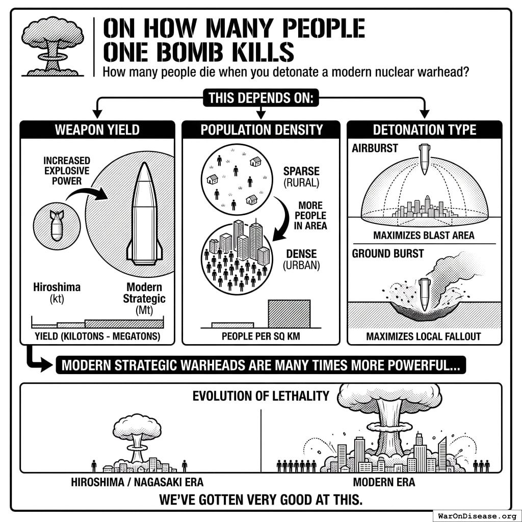 Now that you know nuclear weapons cost $16.98 per death, you can compare them to other methods of killing people. This is the darkest optimization problem in human history. But here we are.