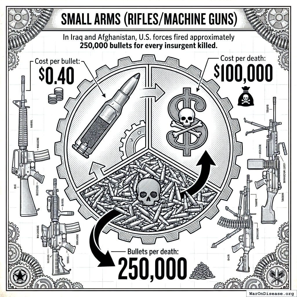 For the price of a coffee, your military can kill one human being. You have industrialized death to the point where killing a person costs less than caffeinating them.