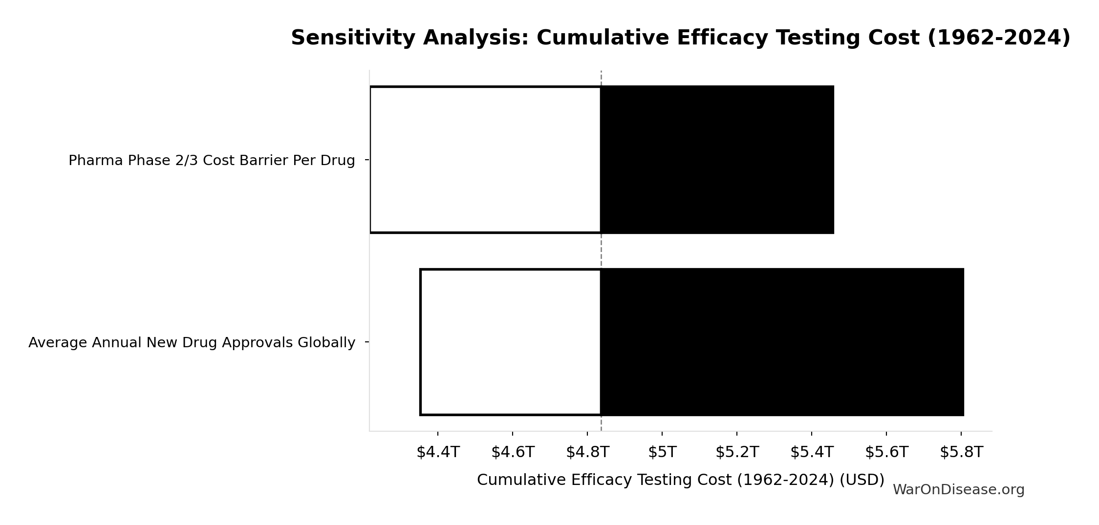 Simulation Results Summary: Cumulative Efficacy Testing Cost (1962-2024)