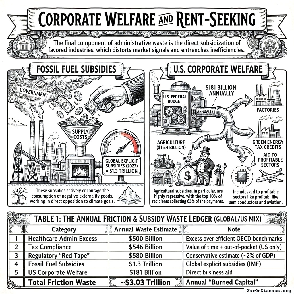 The final component of administrative waste is the direct subsidization of favored industries, which distorts market signals and entrenches inefficiencies.